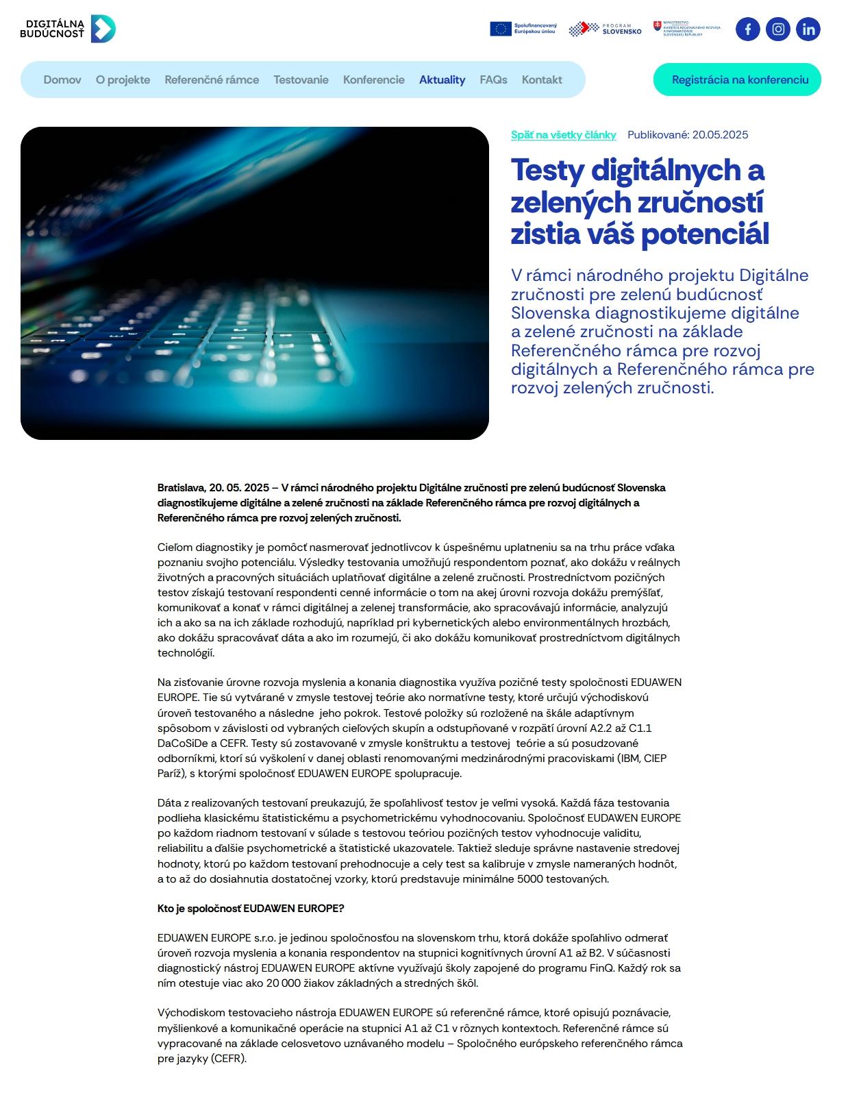 Bratislava, 20. 05. 2025 – V rámci národného projektu Digitálne zručnosti pre zelenú budúcnosť Slovenska diagnostikujeme digitálne a zelené zručnosti na základe Referenčného rámca pre rozvoj digitálnych a Referenčného rámca pre rozvoj zelených zručnosti.